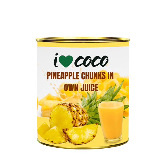 Enjoy the refreshing taste of I LOVE COCO Pineapple Chunks, a perfect tropical ingredient that adds natural sweetness and vibrant flavor to your favorite dishes. Whether eaten on its own, blended into smoothies, or added to meals, our premium-quality pineapple chunks provide a delicious and nutritious experience.